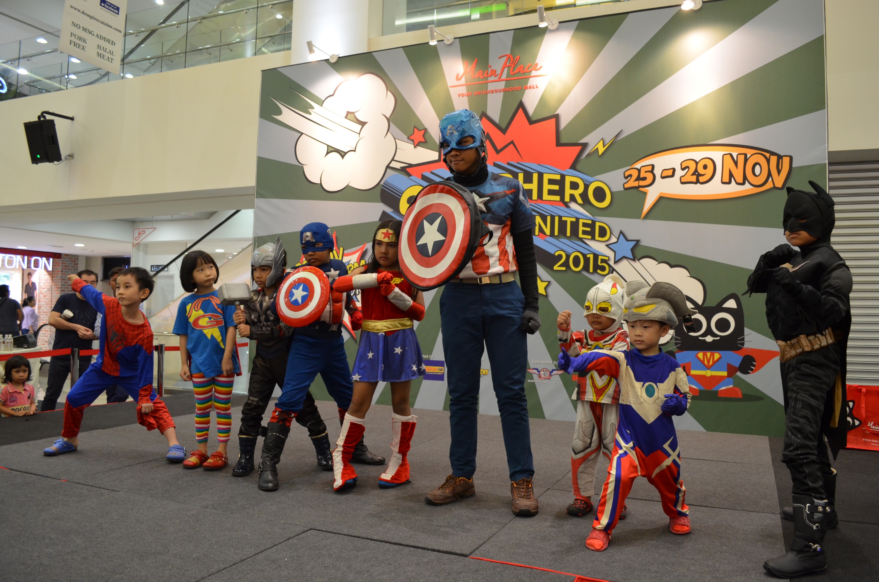 In conjunction of school holiday, Main Place Mall is organizing a 5-days Superhero Fans United Fair 2015 at Concourse Area from 25th – 29th November 2015. In this fair, lots of figurine of Superheroes were displayed. Asides from that, Main Place has also organized a children cosplay competition on 29th November 2015. Shop & Win contest also been held in between the fair for customers to win attractive prizes.