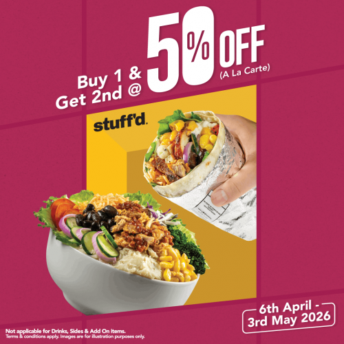 Stuff' D: Buy 1, Get 2nd at 50% OFF
